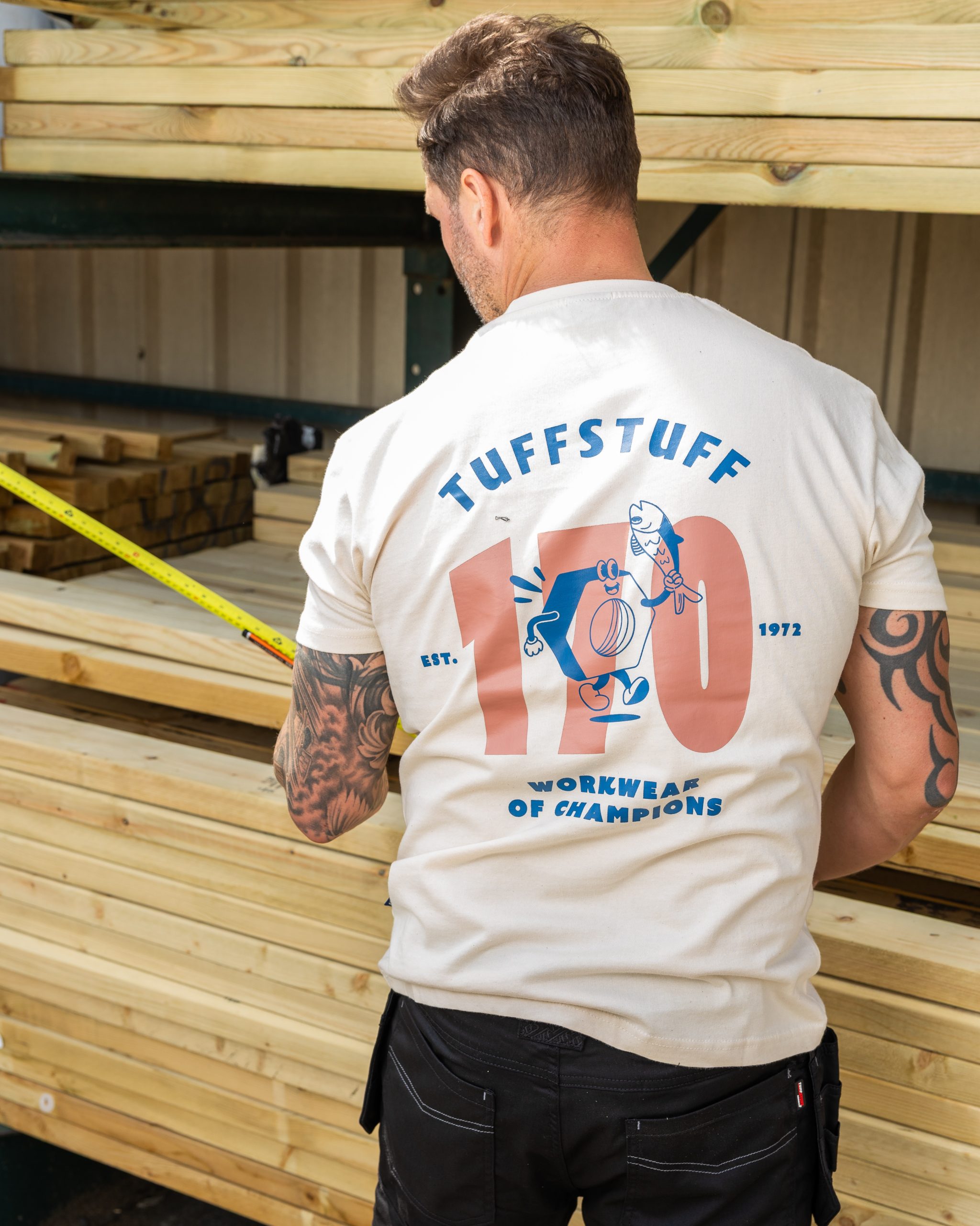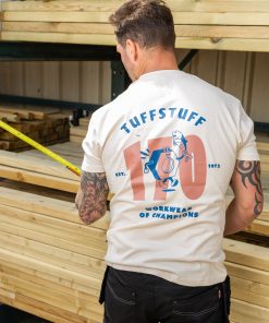 100% Cotton | 220 gsm | Made for everyday wear | Bold TuffStuff branding with large rear logo and front logo | Flexible stretch fabric for ease of movement | Reinforced at the shoulder seam and back of the neck